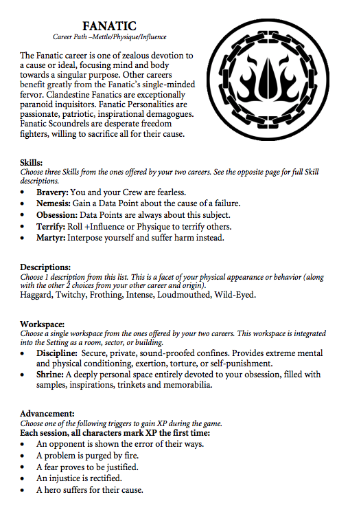 Renounce, 10 XP: Choose a Career. After extended downtime immersed in that trade, replace one of your current Careers with the new one. Name a new archetype. Replace any old Career skills with skills from the new Career.