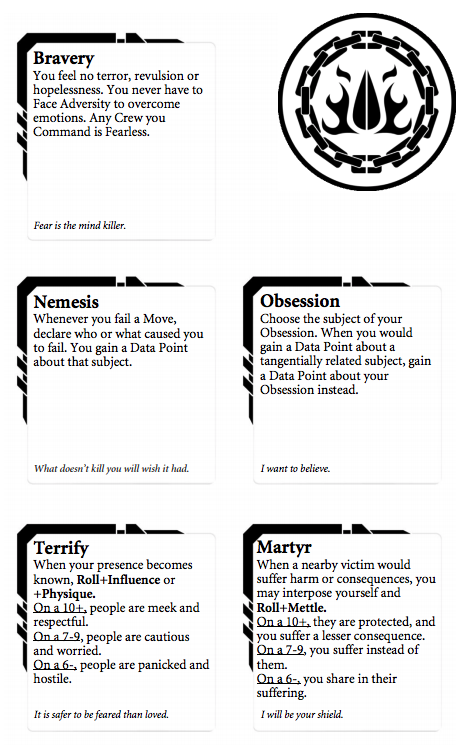Plan, 4 XP: Describe a goal, event, or act. The GM will provide you with a lead, the first step to accomplishing that goal. Example: Liberate Novanna station, find my parents, dismantle the smuggler network, start a criminal cartel, etc.